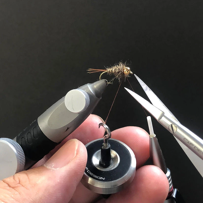 Der CFT-135 ist ein extrem funktioneller, kleiner Dubbing Twister, der sich perfekt für das Verdrallen von Drähten oder anderen stabilen Materialien eignet und für alle, die einen direkteren, einfacheren Ansatz beim Fliegenbinden bevorzugen. Einfach den Haken in die Dubbing-Schlaufe einhängen, die Schlaufe mit einer Hand festziehen und den Dubbing-Twister ein wenig verdrehen.